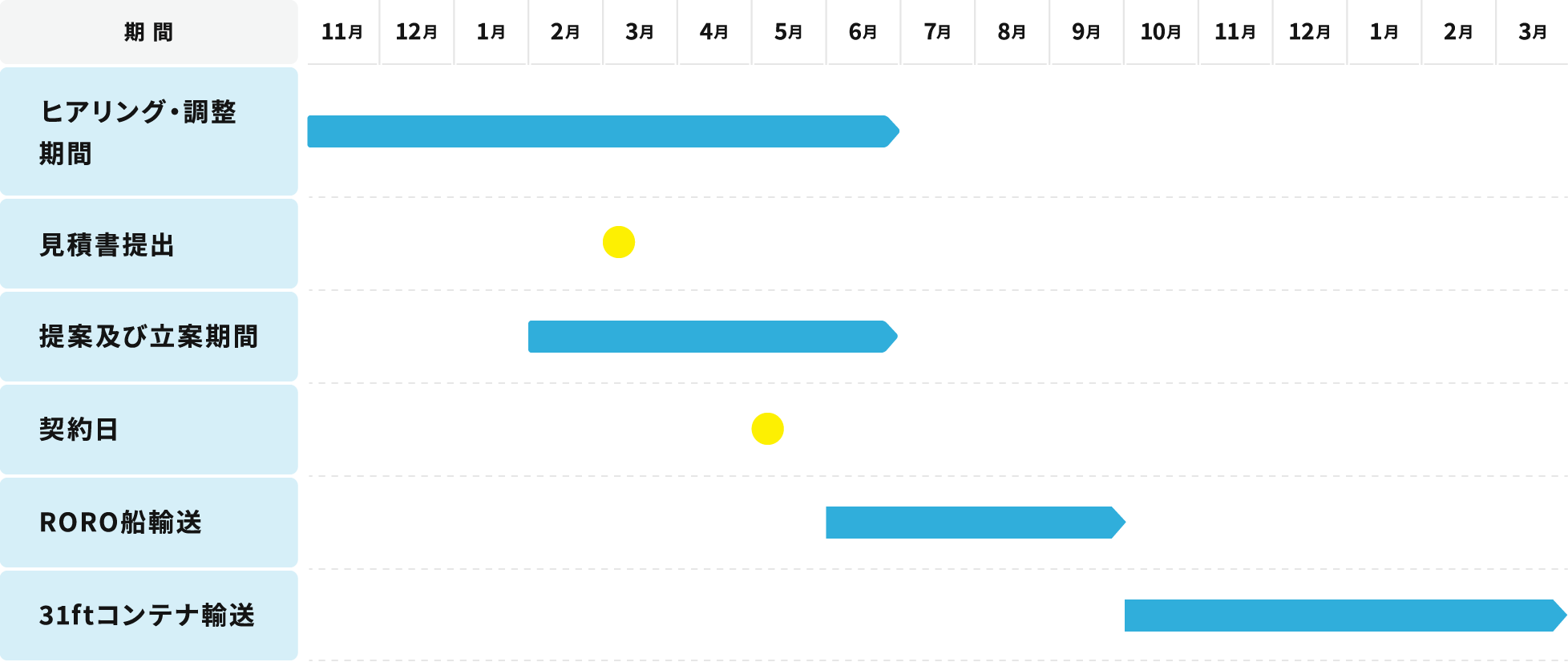 半導体原料(危険品)を製造するお客様に対し、従来のトラック輸送から、海上輸送(RORO船)と鉄道輸送(31ftコンテナ)へ切り替えるモーダルシフト輸送を提案・実施。
