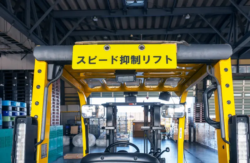 トナミ運輸は、商品事故防止や労働災害事故防止の一環として特積事業所全店において、走行スピードを抑えたフォークリフトを導入しています。
