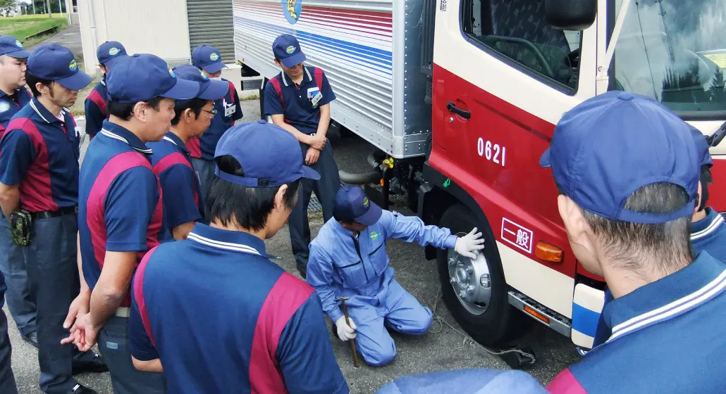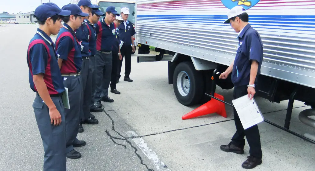 営業用車両の管理については、日常的に法令を遵守することを基本に、ドライバーとしての適格性を確保・安全運行に努めることを責務として業務に取り組んでいます。