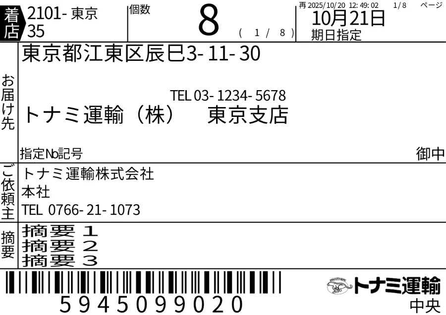 タイプD(摘要あり、バーコードあり、荷札A4ラベル)