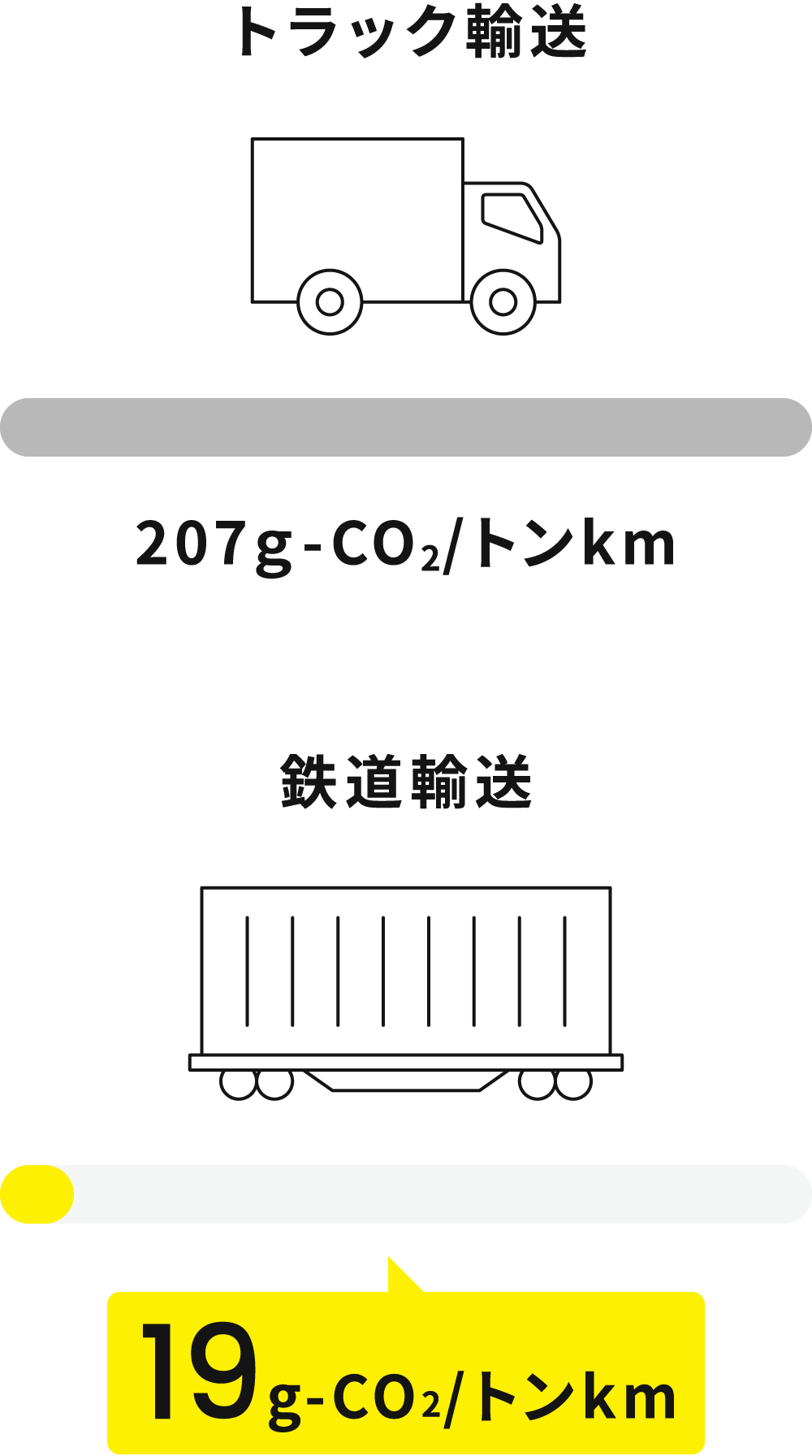 CO2排出量の大幅な削減に貢献し、保管するための倉庫の空き状況やドライバー不足に左右されない安定輸送。