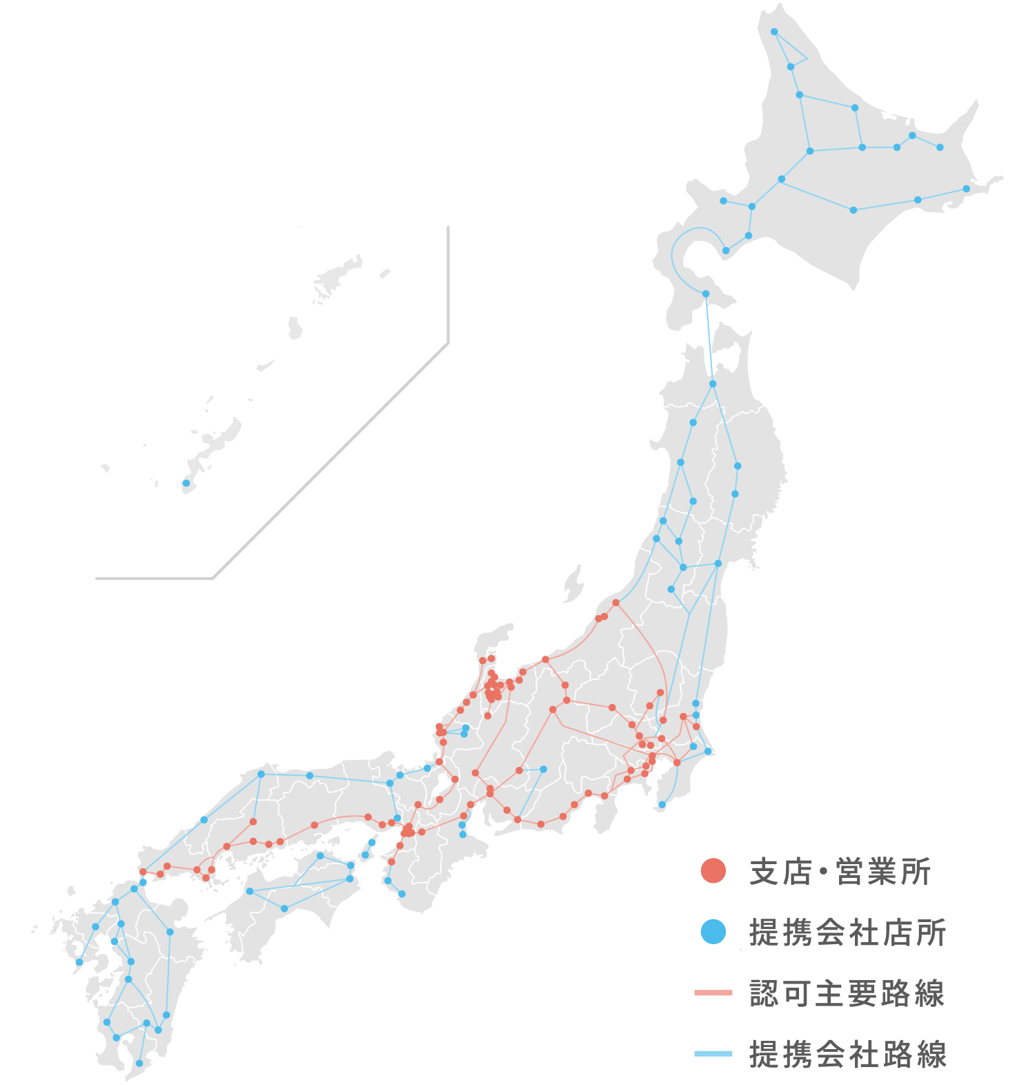全国の企業へ、日本中を網羅する私たちのネットワークがお客様の荷物を確実にお届けします。